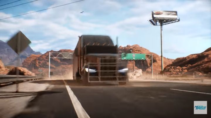 | Porsche billboard in the background. Wonder which model is on it. Seems to be the same three-sided structure carried over from NFS 2015. |