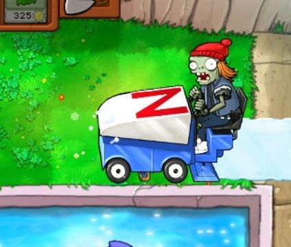 | As the name refers, it is obviously a Zamboni. As said in its almanac entry, "Not to be mistaken with a Zamboni brand ice resurfacing machine. Zamboni and the image of the ice-resurfacing machine are registered trademarks of Frank J. Zamboni & Co., Inc., and "Zomboni" is used with permission. For all your non-zombie related ice resurfacing needs, visit www.zamboni.com!", it is licensed in the GOTY edition and versions after the GOTY version. |