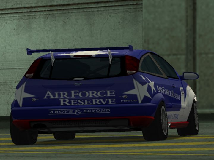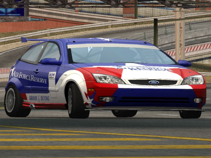 Oh, this car and livery was based on irl Ford Focus "Air Force Reverse Team" Touring car, that same one was appeared in Ford Racing 3 with different body design