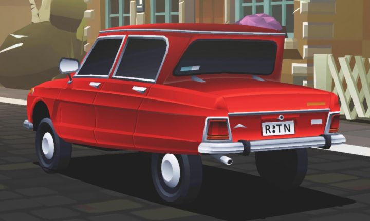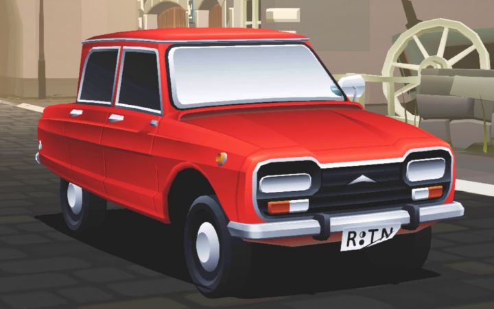| This car is a composite. The sides and rear are those of a Citroën Ami 6, but the front of the Ami is definitely different from what is shown here and in the game. The front shown here is either a Renault design or a Dacia but I can't nail down the exact model. | |