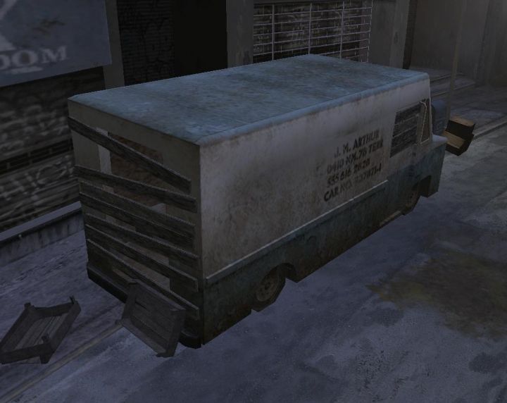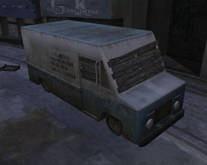 | This van has a quite odd difference between the PS2 and the PC version. On PC the front of the van is clean, and the rest of the van is dirty. On the PS2 it's the opposite: ![]() And in one of the unlockable concept arts, it's completely clean: manhunt.fandom.com/wiki/Bonus_Material?so=search&file=P15.jpg -- Last edit: 2023-06-26 12:27:46 (Silnev) |