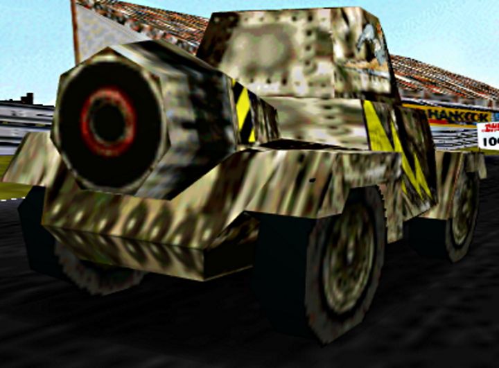 This "car" is the first unlockable vehicle in the game, supposidly representing a tank even though it still has wheels rather than treads. However, rather wonderfully it has a novel weapon that when fired can propel vehicles in its path, as seen above ![]() ![]() |
