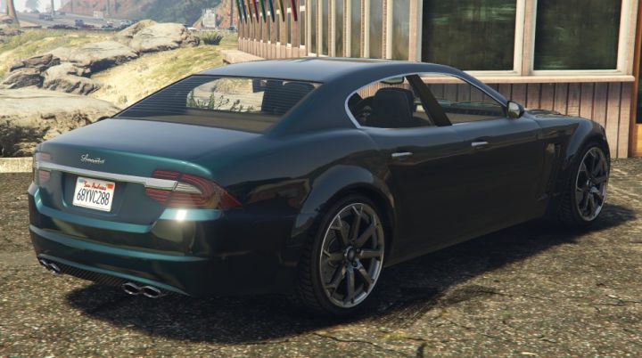 | At 0:14 in Franklin's trailer you can see it's rear end, looks kinda like a Jaguar XFR. -- Last edit: 2013-04-30 17:50:28 | |