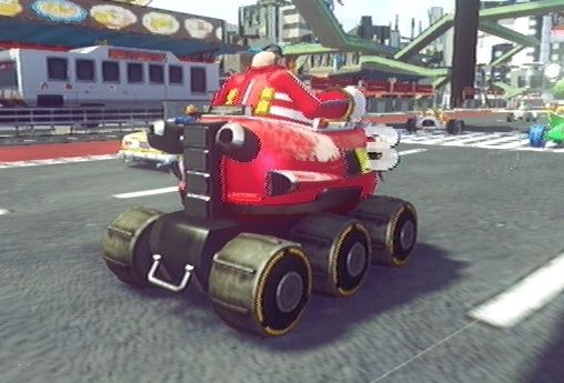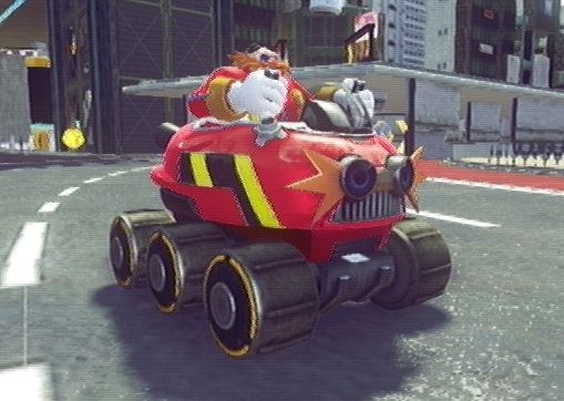 | Robotnik's quote: SnooPING AS usual I see. Unfortunately, that's just a boring Eggman, not a hilarious Dr. Ivo Robotnik. I miss the characters from AoStH: old Sonic and Tails, Coconuts, Scratch and Grounder, Robotnik (and his mother), Wes Weasely, Da Bearz, and... KATELLA!!! Also, Rouge the Bat is not introduced in this game. That's sad too. | |