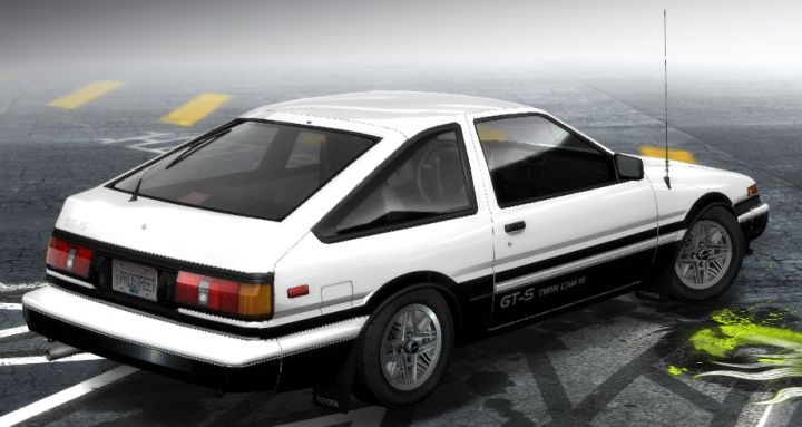 | In NFS is Corolla, but its clearly one error, because this version is a sprinter trueno but in the europe NFS version this car named Corolla GT-S since NFSU 2 | |