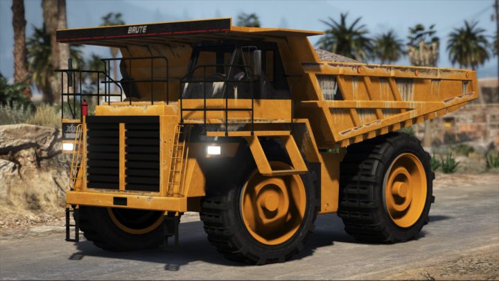 | I find it pretty strange that it's called HVY Dump (HVY being a manufacturer in the GTA universe), yet if you look closely, it's got the Brute brand logo and model name font on it. | |