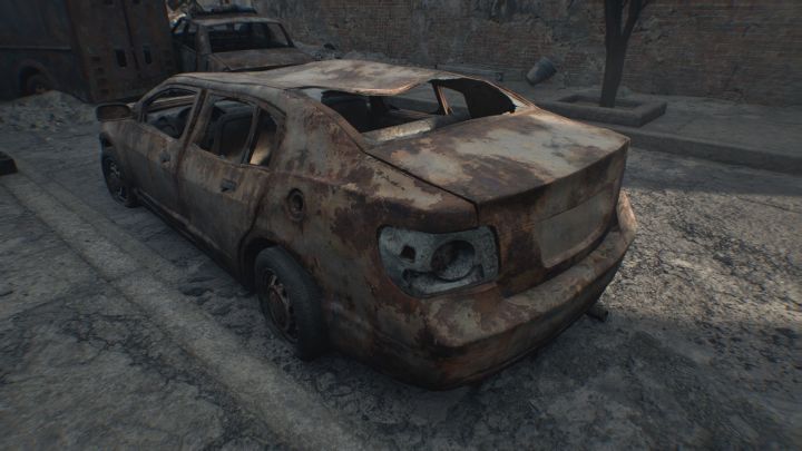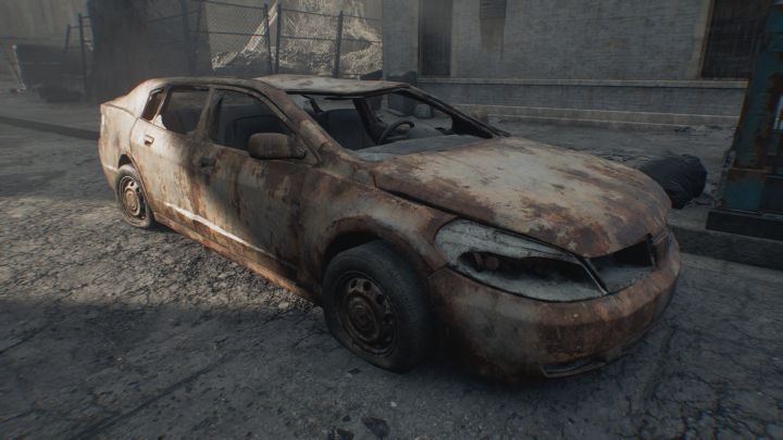 | I could be wrong, but the model looks like the 2006 Chevy Impala Sedan that was featured in RE2/RE3 Remake. Of course re-made as a destroyed junk car. |