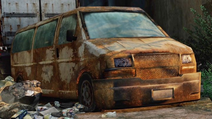 | I've been playing the game, and this is a Chevrolet Express. The back matches (though there are no lights), and while it's hard to tell here, there are horizontal turning signals below the headlights and a horizontal bar across the grill. The back door on the passenger side is also a double door, which the VW doesn't have. | |