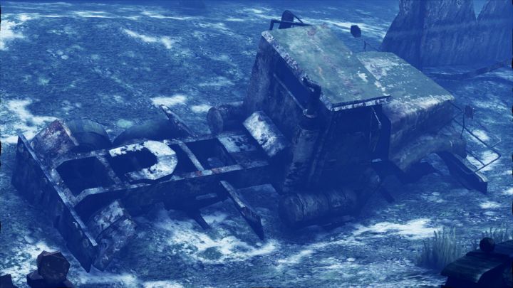 | There is also normal Barracks with front completly stucked in rock, and 2 tanks - one is submerged to soft seabottom, and one is still on ground - seems like wrecked Rhino (I dont mean that Daimler-Benz, which is listed) | |